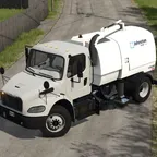 Kehrwagen. Kann jede Art von Ladung vom Boden aufnehmen. Fassungsvermögen: 4.000 Liter.